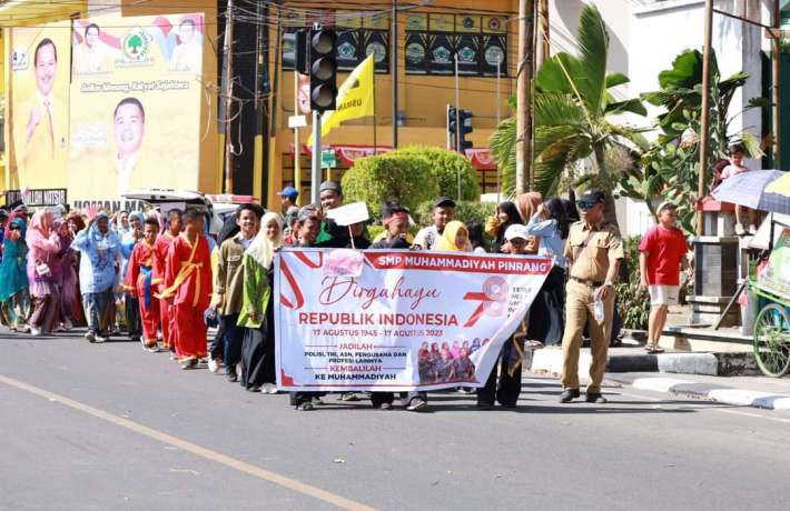 Dalam rangka HUT Kemerdekaan RI yg ke 78 SMP Muhammadiyah Pinrang kembali ikut memeriahkan dengan mengikuti acara karnaval yang diadakan oleh Pemkab Kota Pinrang, Senin (14/08). Mulai pukul 13.00- selesai dari Peserta SD, SMP/MTS, SMA/SMK Sederajat.