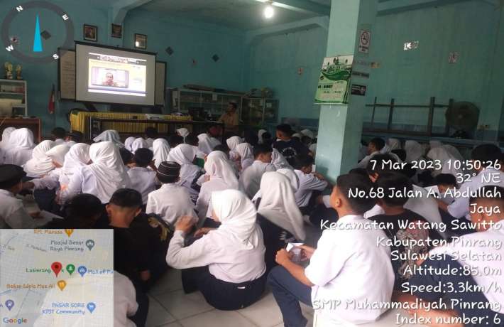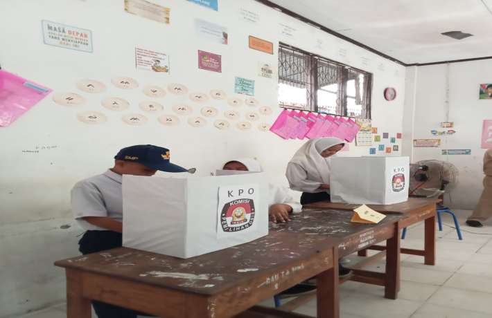 Kegiatan pemungutan suara untuk ketua OSIS SMP Muhammadiyah Pinrang digelar serentak oleh semua siswa pada Senin, 27 Februari 2023.
